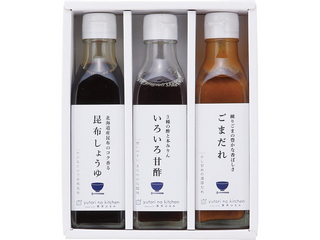昆布しょうゆ235g、いろいろ甘酢220g、ごまだれ245g