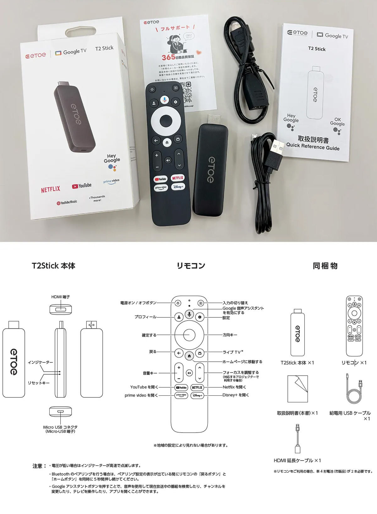 【同梱 Google TV Stick の特長】D2861-GTVは、etoe(エトエ)社製の「Google TV」を搭載したHDMIストリーミングスティックです。