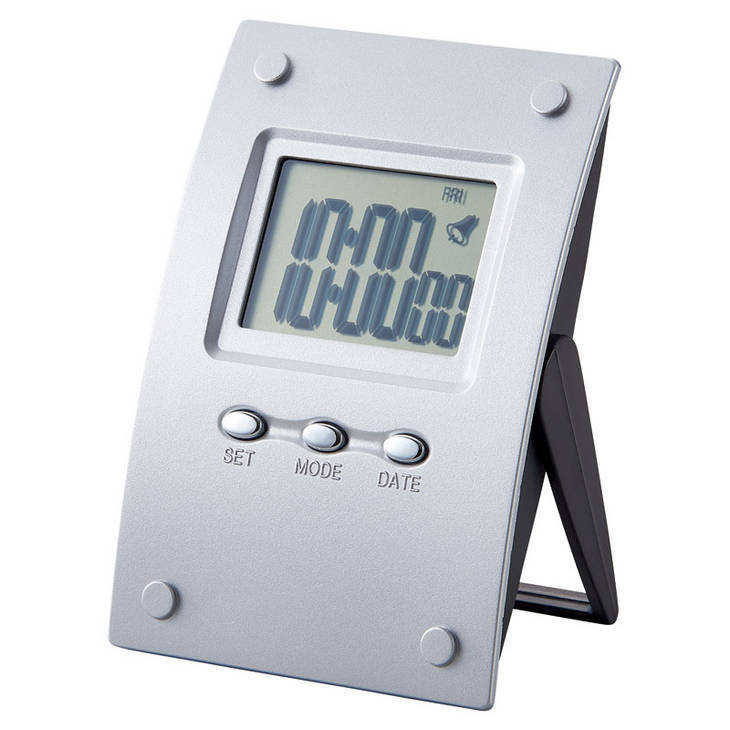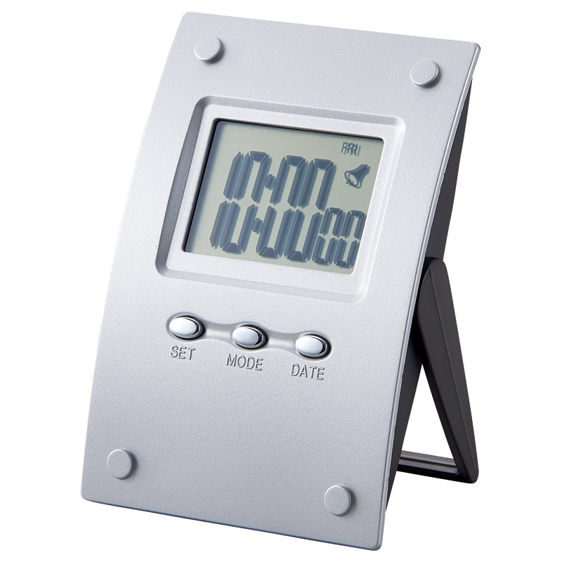 22657008 高級感のあるシャープなデザインの多機能クロック。時計、アラーム、スヌーズ、カレンダー、ストップウォッチの充実の機能付。