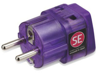 海外で電気製品を2個同時使用を可能にする電源形状変換アダプタです。差込口はSEタイプへ変換します。受け口(メス側)は2つあり、ひとつはユニバーサルタイプで、もう一つはAタイプとCタイプがささります。