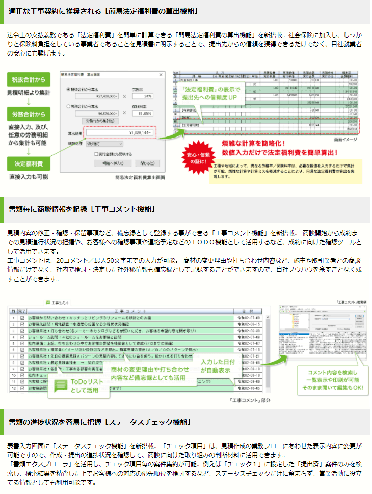 積算見積プロセッサの決定版。更なる操作性の向上と商機をつかむ管理術で、工事見積提出の効率化と成約率に繋げる機能を搭載