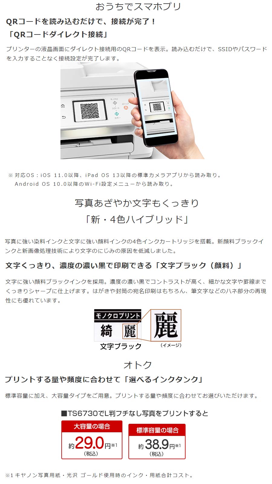 | プリンター A4カラーインクジェット複合機 ピクサス PIXUS TS6730 6258C001 ホワイト スペック情報 |