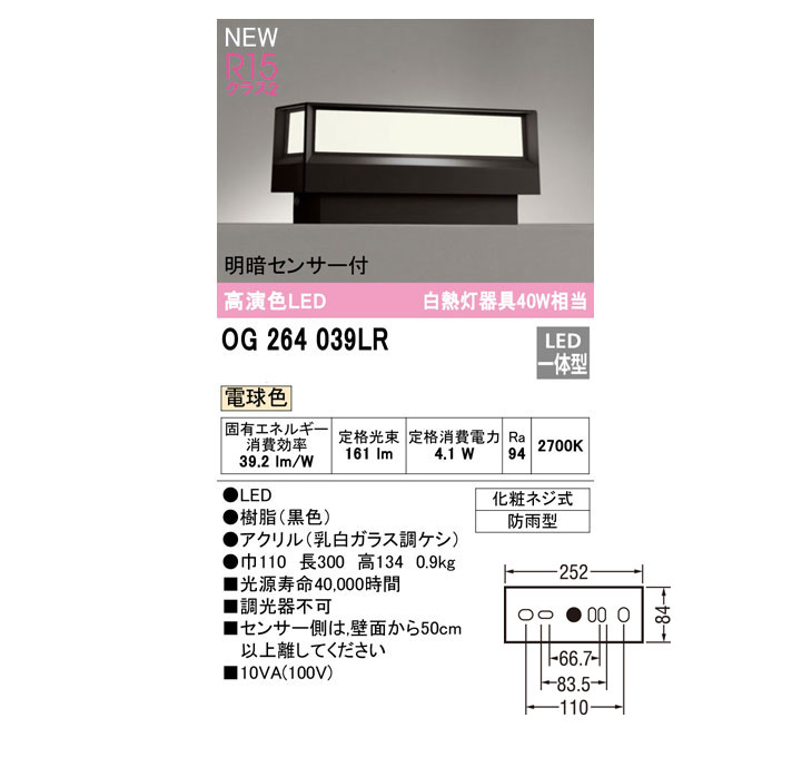OG264039LR LED門柱灯 【電球色・明暗センサー付】