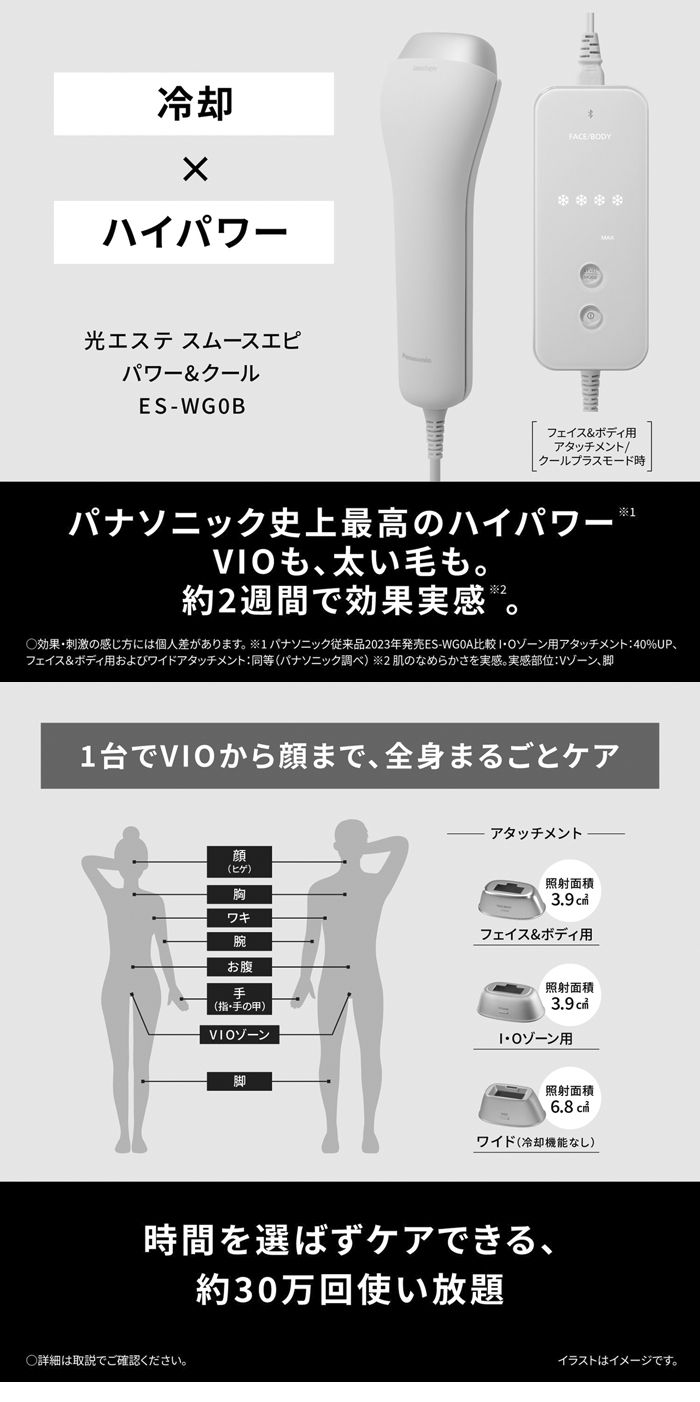 強力照射で、約2週間で効果実感。 ・サロンにならった冷却×IPL照射方式でパナソニック史上最高出力と低刺激を実現。