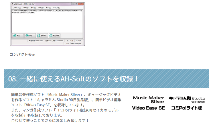SAHS41009 「VOICEROID+ 京町セイカ EX」は、明るく聞き取りやすい声が特徴の入力文字読み上げソフトです。