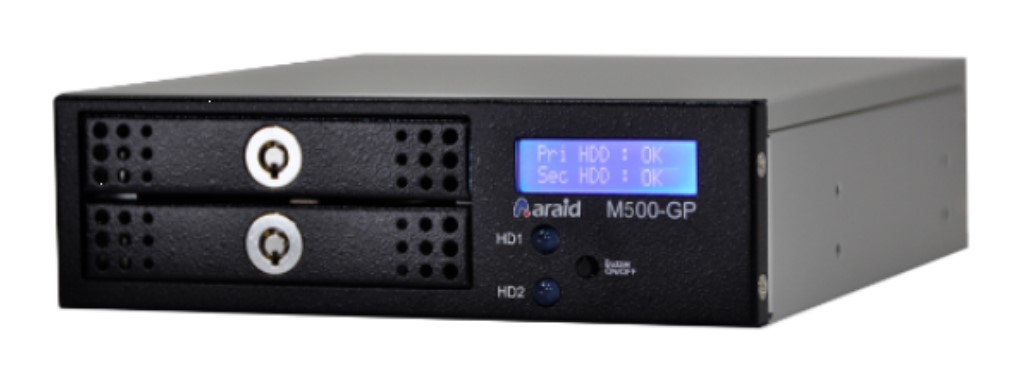 ARAID M500-A/B 黒。ディスクレス。HDDの着脱もしやすいリムーバブルトレイ式のハードウェアRAIDコントローラを搭載したRAIDユニット