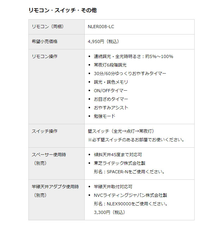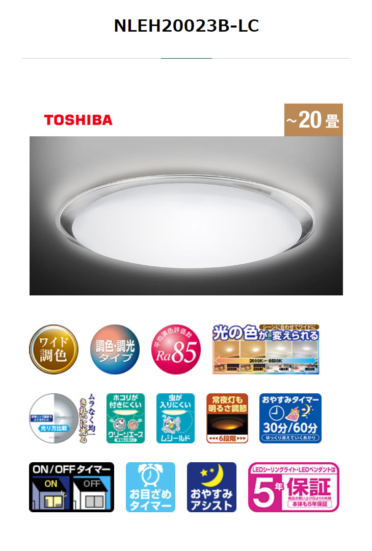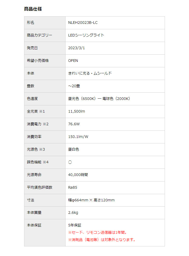 | 【大型商品!】NLEH20023B-LC LEDシーリングライト(昼光色〜電球色)【〜20畳】調光・ワイド調色 スペック情報 |