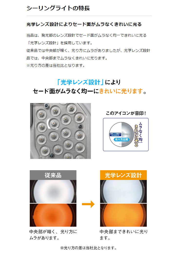 ●光学レンズ設計によりセード面がムラなくきれいに光る