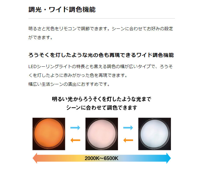 | 色温度 | 昼光色(6500K)― 電球色(2000K) |