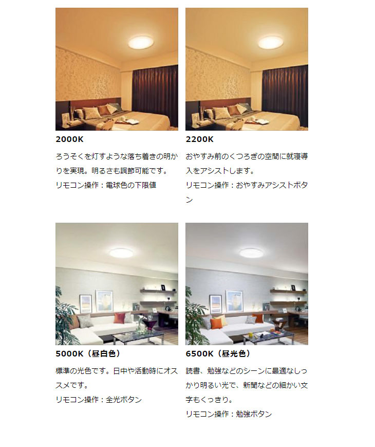 ●明るさと光色をリモコンで調節できます。シーンに合わせてお好みの設定ができます。