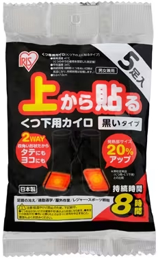 くつ下に貼るカイロ、足の甲に上から貼るタイプ。5足入り/15足入り