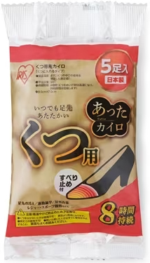 ●持続時間:8時間(くつをぬいだ時は高温になり、持続時間は短縮します)