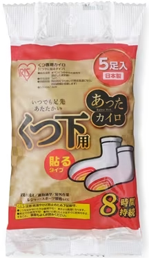あたたかさの持続時間8時間、くつ下に貼るカイロ。5足入り/15足入り/黒色5足入り/黒色15足入り