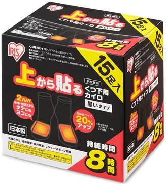 くつ下に貼るカイロ、足の甲に上から貼るタイプ。5足入り/15足入り