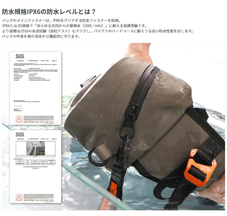 雨との遭遇を避けられないバイク乗りにとって、『防水』はバッグ選びの重要な要素。