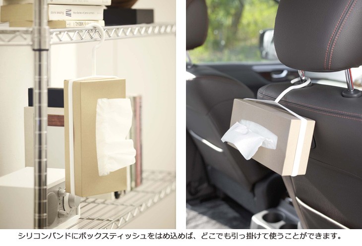 取り付け簡単 !シリコンバンドで留めるだけ!どこでも引っ掛けて使えるティッシュフック。