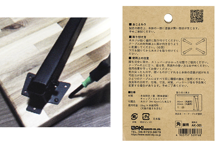 | ローテーブル折畳脚 AK-301 カクアシ マットブラック スペック情報 |