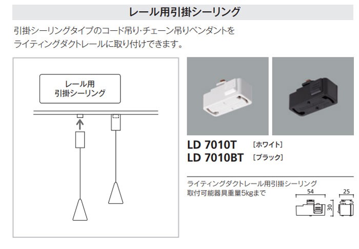 LD7010BT ライティングダクトレール用引掛シーリング【ブラック】