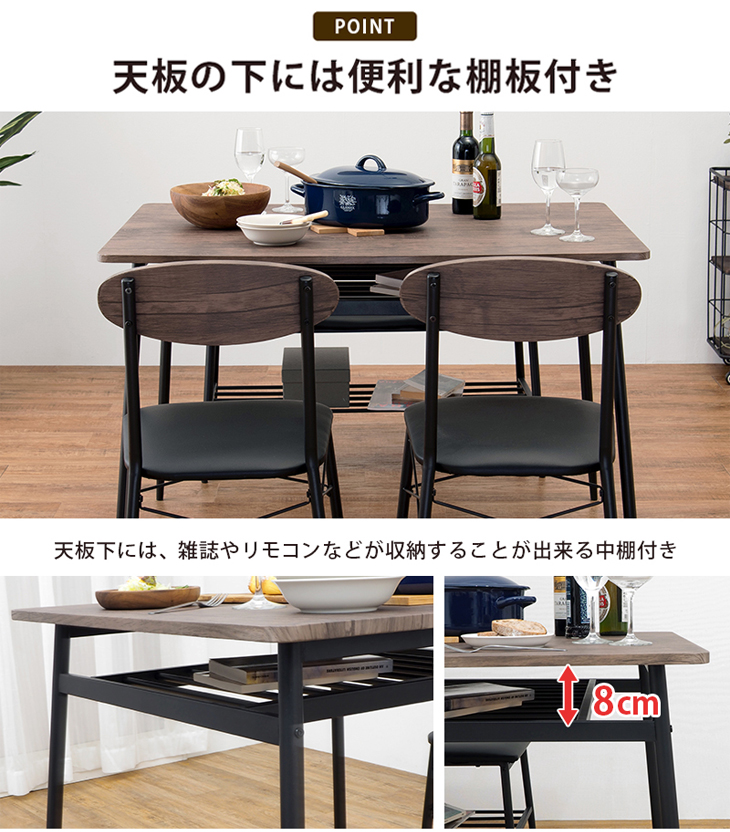 ●テーブルをスッキリ使える棚付き