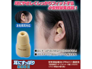 耳にすっぽりおさまるので目立ちません。メガネやマスクをかけていても使えます。ご高齢になると「どうも聞き取りにくい」というお悩みの方も。補聴器ほど大げさなものは要らない・・・という貴方にオススメなのが目立ちにくく小型形状の「耳にすっぽり集音器3」です。耳穴にすっぽりとおさまる超小型形状にもかかわらず、しっかりと周囲の音を増幅して聞くことができます。音量調節ダイヤル付きで聞き取りやすい範囲で調節できます。イヤホンキャップは耳穴に優しい低反発素材で、サイズもS・M・Lの3タイプがセットされてます。左右両耳兼用タイプです。