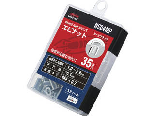 | LOBSTER/エビ印 ブラインドナットエビナット(平頭・スチール製) 板厚2.0 M4X0.7(35個入) NSD4MP スペック情報 |