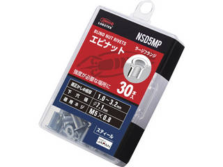 | LOBSTER/エビ印 ブラインドナットエビナット(平頭・スチール製) 板厚3.2 M5X0.8(30個入) NSD5MP スペック情報 |
