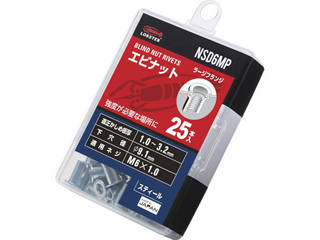 | LOBSTER/エビ印 ブラインドナットエビナット(平頭・スチール製) 板厚3.2 M6X1.0(25個入) NSD6MP スペック情報 |
