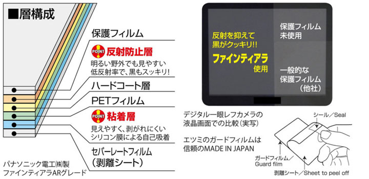 【ファインティアラ】フィルムは独自の超低屈折率反射防止素材技術とナノ粒子高分散化技術の結晶でこれまでにない世界最高水準の超低反発・高耐摩耗性を誇ります。ピントチェック、シャープネス、コントラスト、ホワイトバランス、色の階調などのチェックが可能な高級フィルムです。