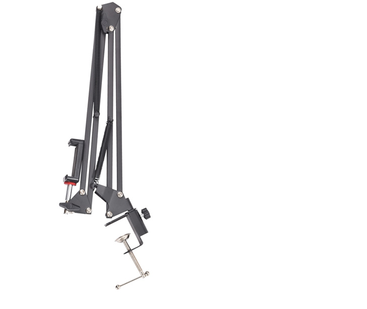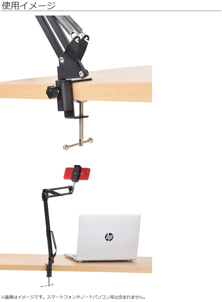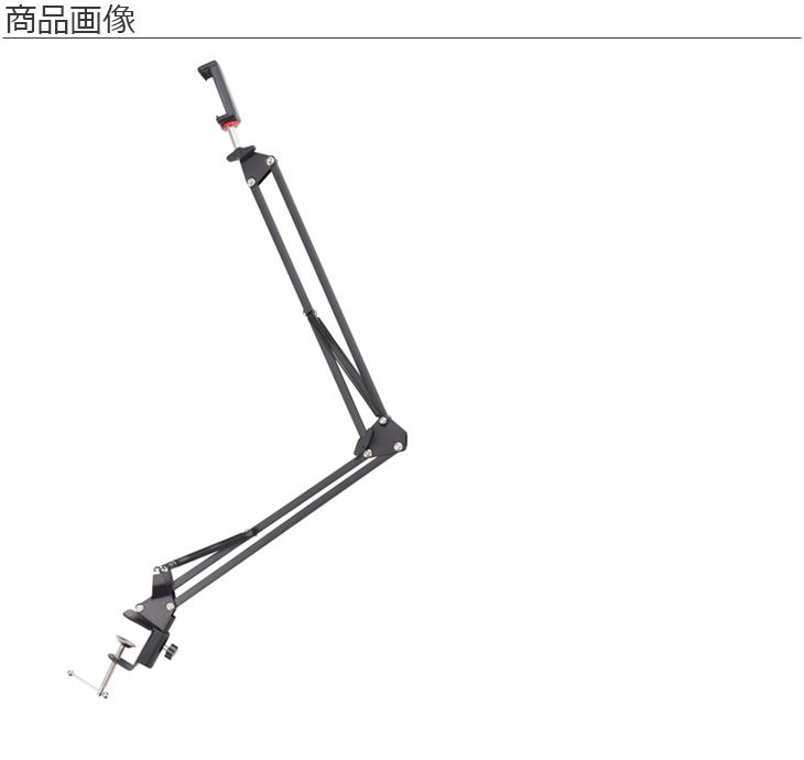 オンライン会議や商品撮影時のスマホの固定に便利。スマホホルダーを外すと、WEBカメラやリングライトの取り付けも可能です。