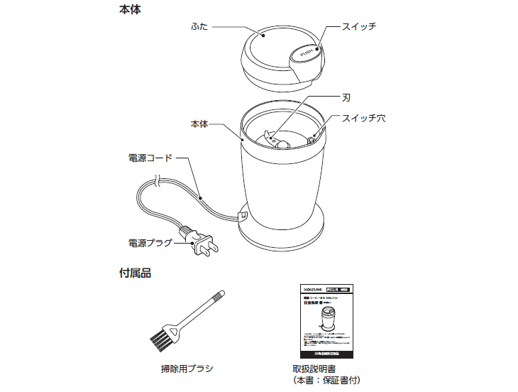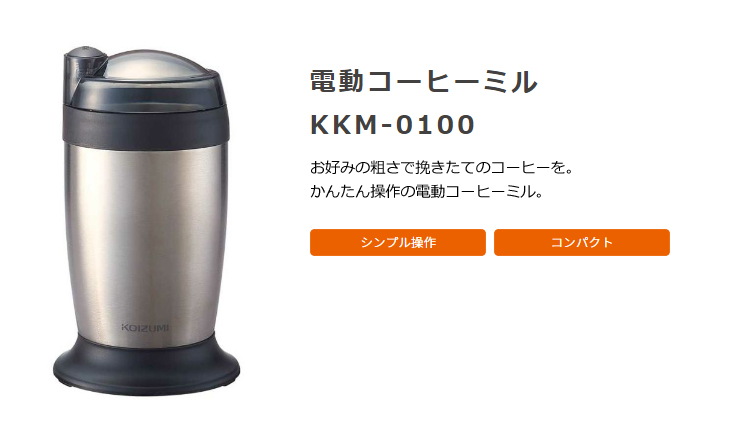 KOIZUMI 小泉成器 KKM-0100/S 電動コーヒーミル