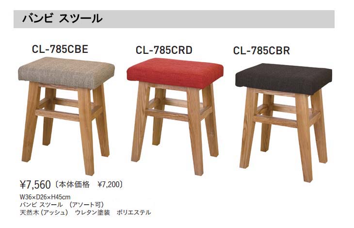 Bambi バンビ 天然木 ダイニング スツール CL-785CBE