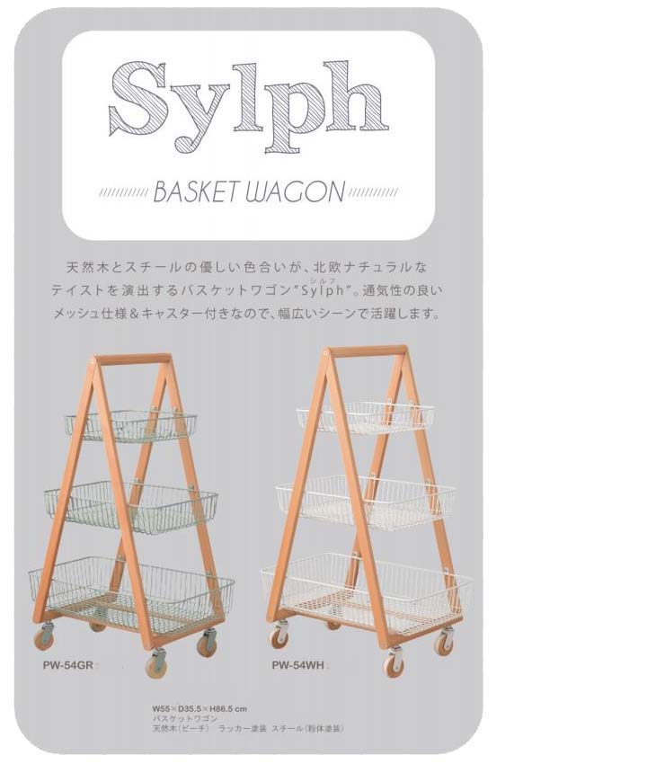 メーカー直送 同梱不可 カード決済のみ対応 沖縄・北海道・離島お届け並びに時間指定不可 PW54GR 【組立家具】天然木とスチールの優しい色合いが、北欧ナチュラルなテイストを演出するバスケットワゴンSylph。