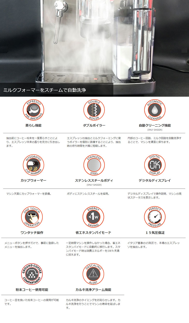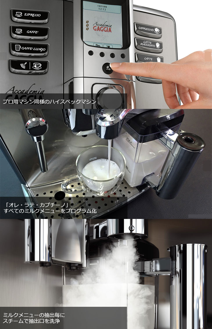 それぞれ設定することができます。Gaggiaのミルクフォーマは本格イタリアのカプチーノを提供可能です。