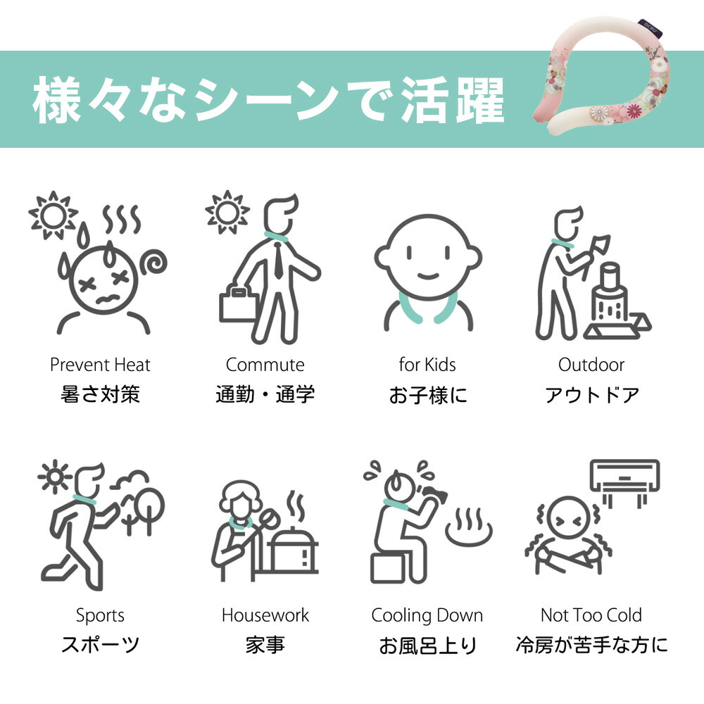 28°C以下で凍結するクールリング。日本の伝統的な和柄をモチーフにしたデザイン。着物のような「上品な華やかさ」が特徴です。