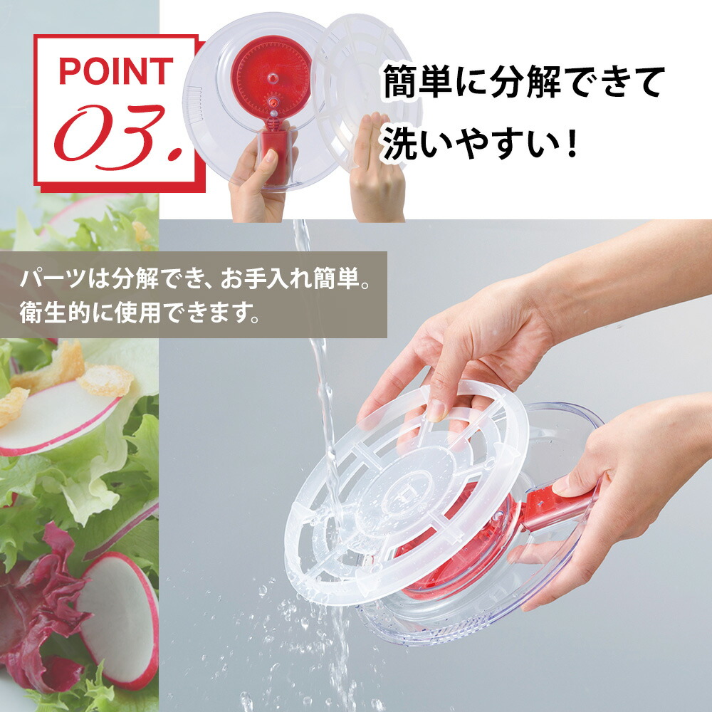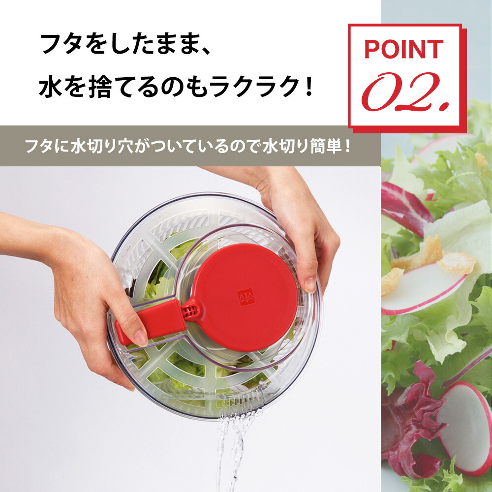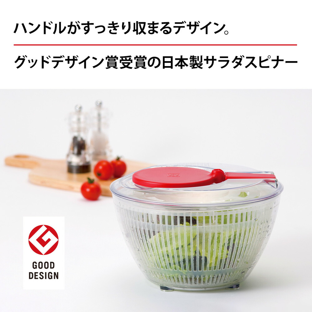ハンドルがすっきり収まるデザインのサラダスピナー。