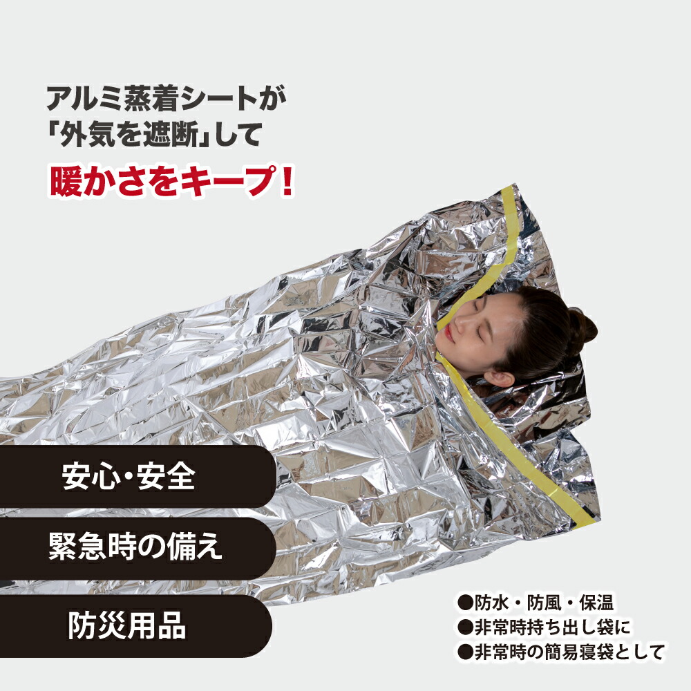 防災 アルミ 寝袋 災害 避難 家族 防災グッズ アルミ蒸着シート アルミ蒸着ポリエステル 一時避難 個装重量 商品名 地震 外気 材質 津波 洪水 準備 緊急時 防水用品 防災用寝袋 アウトドア アルミブランケット キャンプ レジャー 保温 登山 簡易寝袋 車中泊 避難グッズ 防寒 防災セット 防災用品 防災用寝袋 防風 震災 非常用