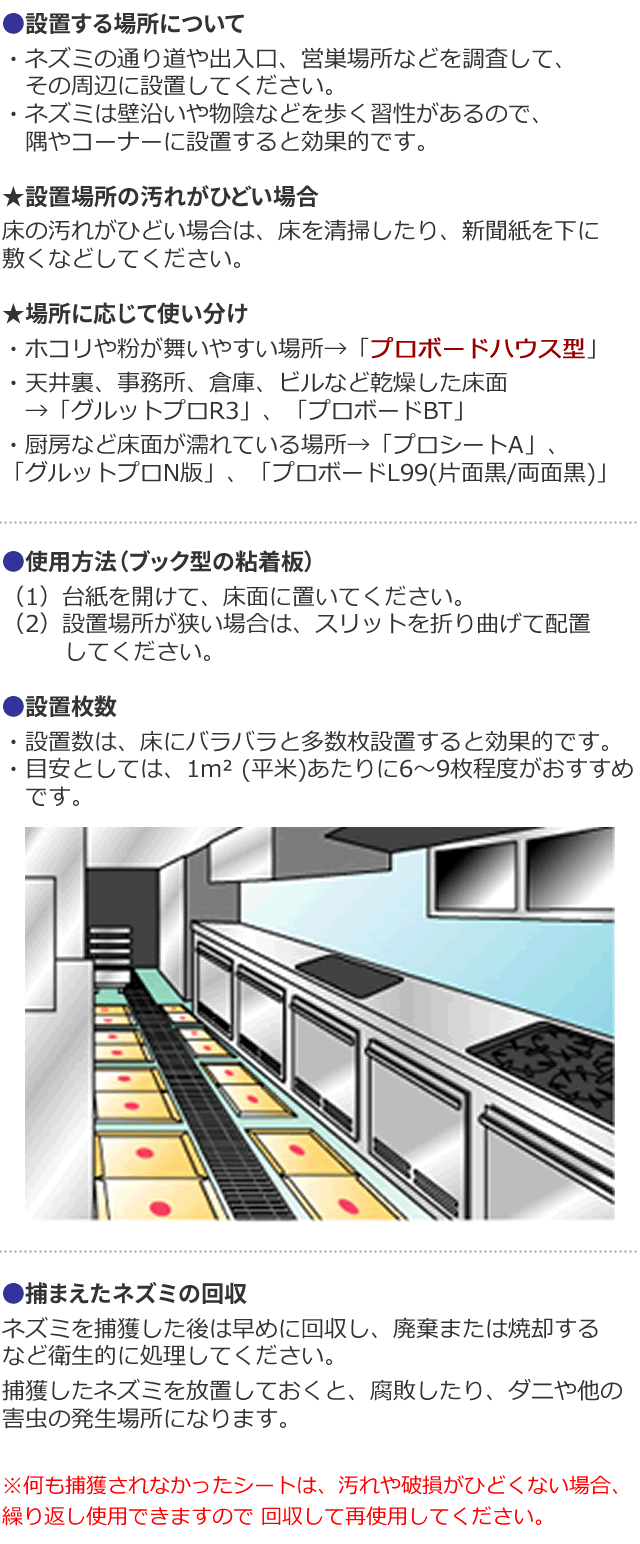 ※ねずみが捕れなかったシートは、破損・汚れがひどくなければ、何回か繰り返し使用できます。回収後、再使用ください。 |