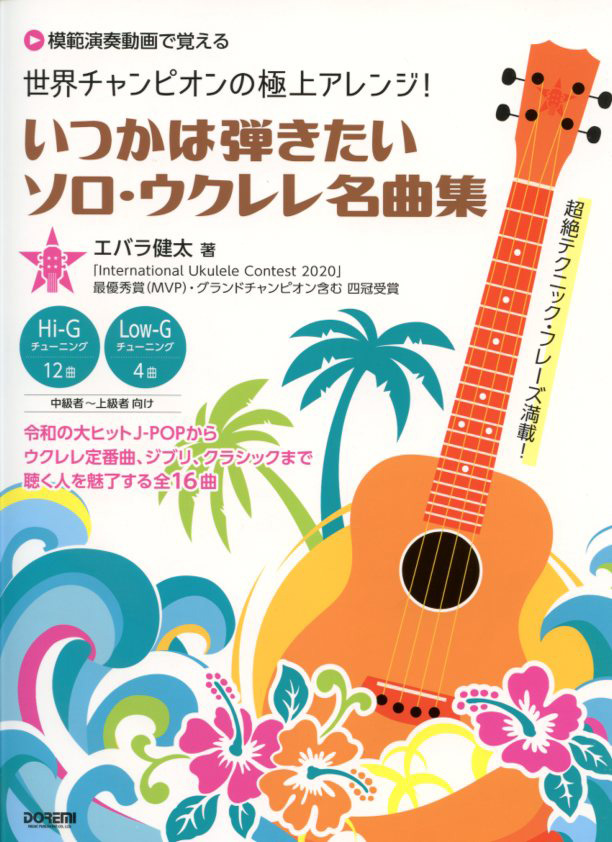 世界チャンピオンの極上アレンジ! いつかは弾きたいソロ・ウクレレ名曲集 【模範演奏動画で覚える】 エバラ健太 編 ドレミ楽譜出版社