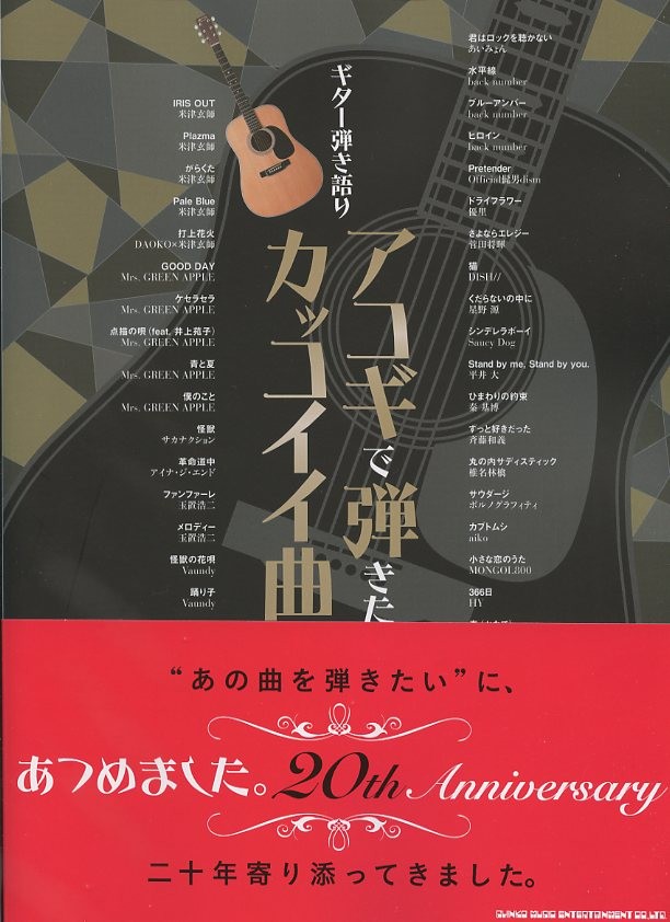 Mrs. GREEN APPLE「GOOD DAY」「ライラック」、米津玄師「IRIS OUT」など、今トレンドの人気曲はもちろん、弾き語りで楽しみたいあいみょんやスピッツなどアコギで弾きたいJ-POPの名曲や定番曲を、全曲TAB譜付き譜面でお楽しみいただけます。全50曲掲載の大ボリュームの1冊です。