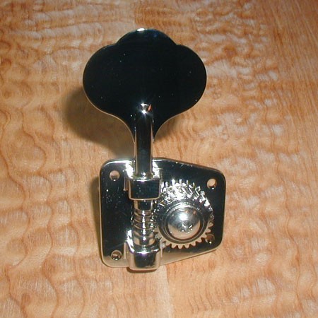 ベースの正面向かってヘッドの左側に取り付けられている弦巻(一般汎用的)であり、軸の取り付け穴はブッシュの外径が17.6ミリなのでネック材によりブッシュ打ち込みの際、無理のないような穴径で取り付けてください。また取り付けビスは2.6ミリ×12ミリのタッピングビスが付属されております。