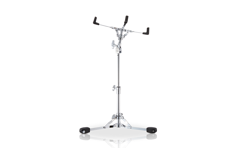 スネアドラムのサウンドを最大限引き出すことをテーマに、スネアドラムの真下にスタンドの中心が来るように配置。3本のバスケットアームも揺れやすくなるよう捻りの位置を中心に近づけ、スタンドへ伝わる振動をコントロールし、より自然なドラムのサスティーンとトーンを引き出す。