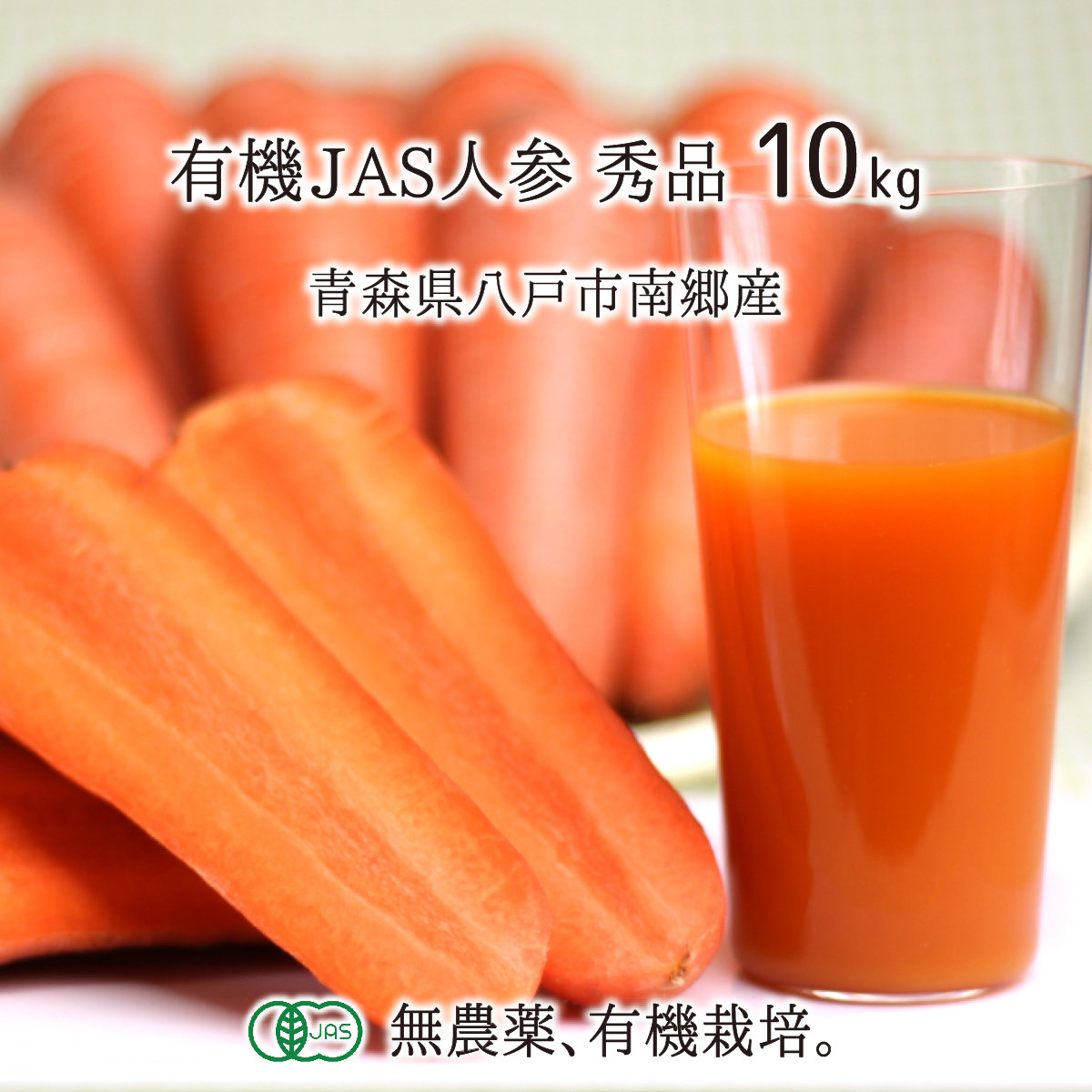青森県八戸市南郷産 無農薬 有機JAS人参 秀品【送料無料】