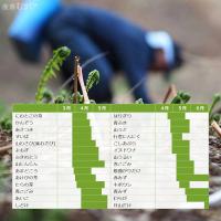 山形県最北の山を知り尽くす名人が、山に分け入り、山に芽吹く恵みを摘んで参ります。上図が凡その採集時期です。