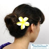 発泡ウレタンで作られたプルメリアのヘアクリップです。発泡ウレタンはやわらかい素材となっておりますので、ある程度の衝撃が加わっても破損いたしません!これで髪の毛をまとめれば、ほんの少しハワイが近づいた気持ちになれますよ!