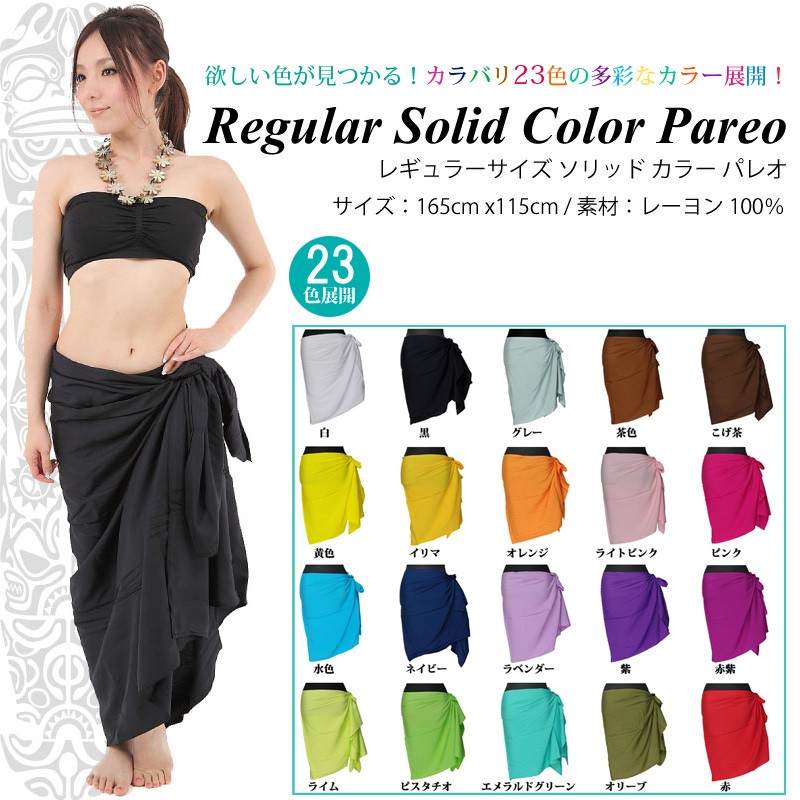 単色無地タヒチアンパレオ【レギュラーサイズ・ロングサイズ】通販!23色のカラバリ展開色♪タヒチアンダンサーに絶賛発売中