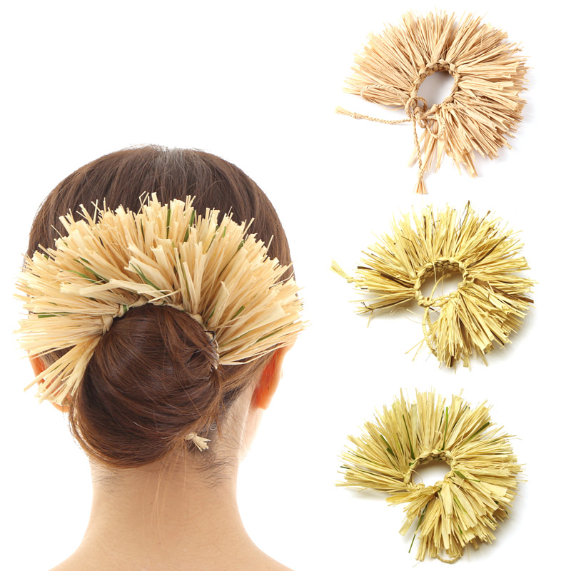 ラフィア シュシュになります。お団子周りに巻いて結ぶだけのシュシュになっております。
