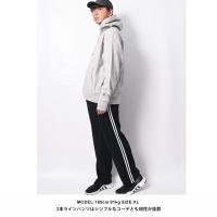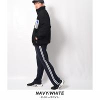 ・裾はリブなし太めのストレートタイプにラインパンツ。