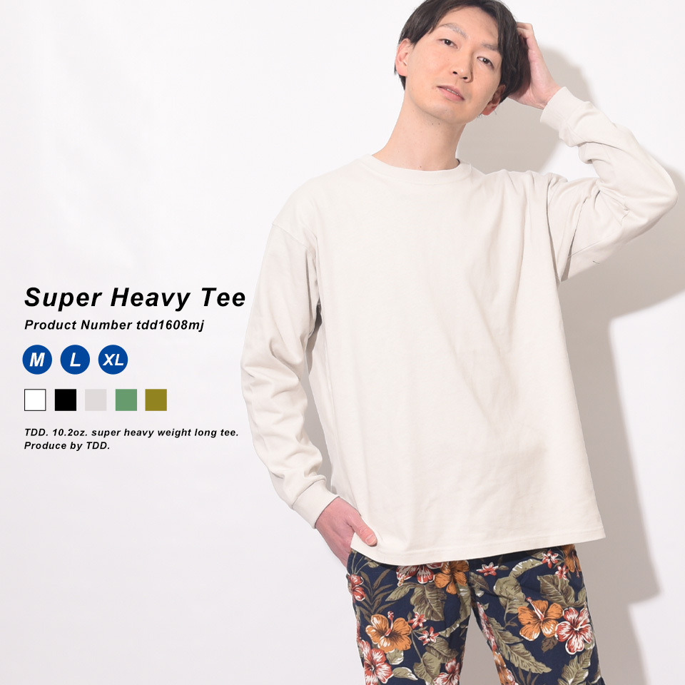 白Tシャツでも透けない厚手の無地のロングTシャツ。その厚さから洗濯の乾きが遅く生地の伸縮性がないほどの厚みです。10オンスを超えるロンTはほとんどありません。