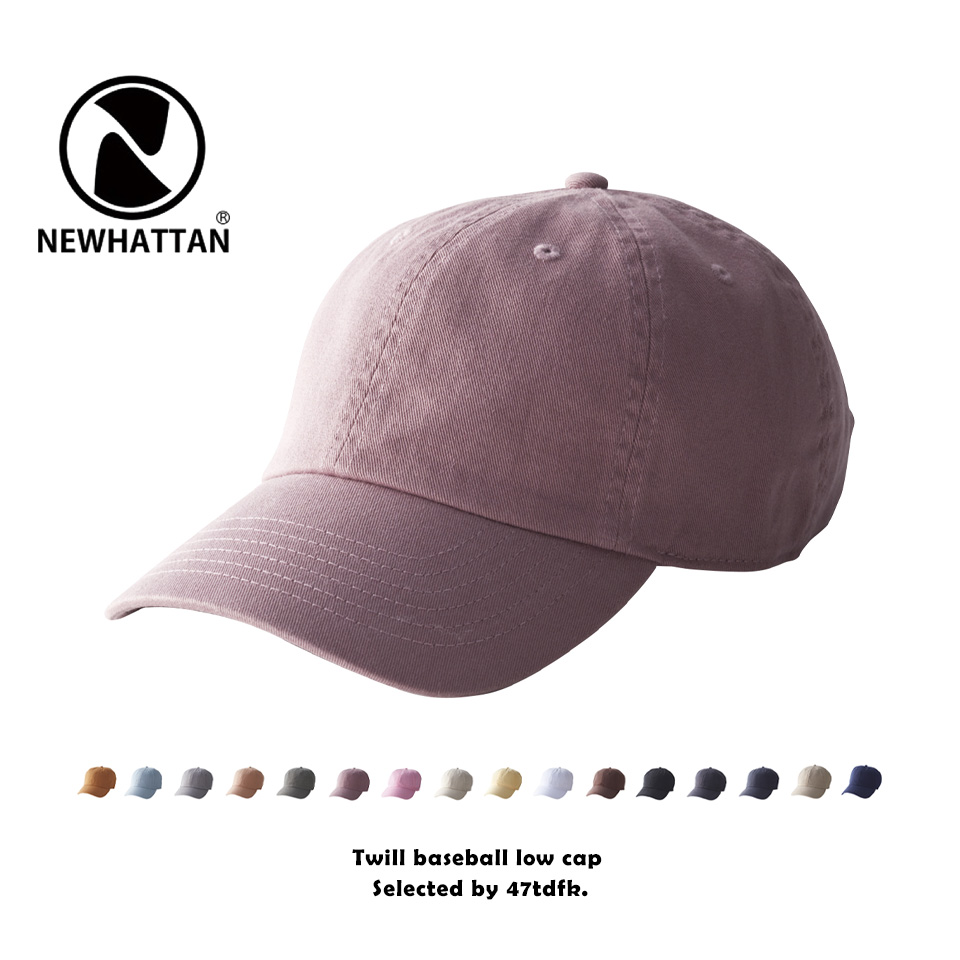 くすみカラーが可愛いニューハッタンのベースボールキャップ。原色ではないカラー展開の為、合わせやすく男女ともに着用できるカラーリングです。綿100%のツイル地で丈夫な作り。何色も持っていたくなるベースボールキャップです。