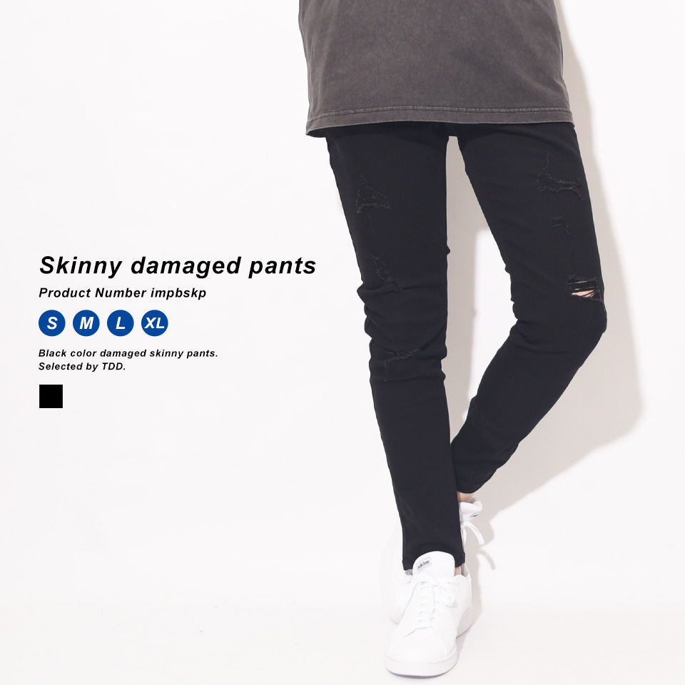 ストレッチが効いたダメージ加工のスキニーパンツ。